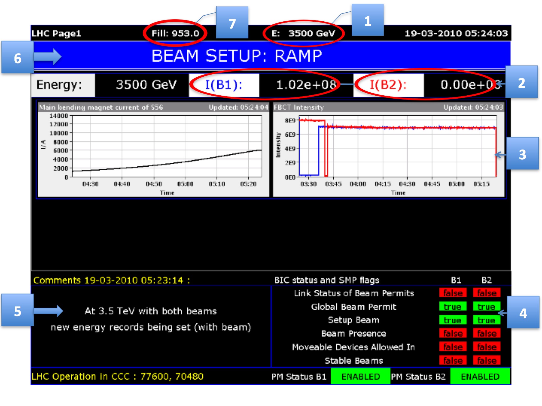 Last night a new very important milestone has been reached by the LHC: two counter-circulating proton beams have been accelerated for the first time to 3.5 TeV, the energy that they should routinely reach in the 2010-2011 running period.